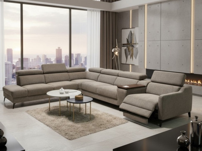 П-образный диван с реклайнером, минибаром и спальным местом
