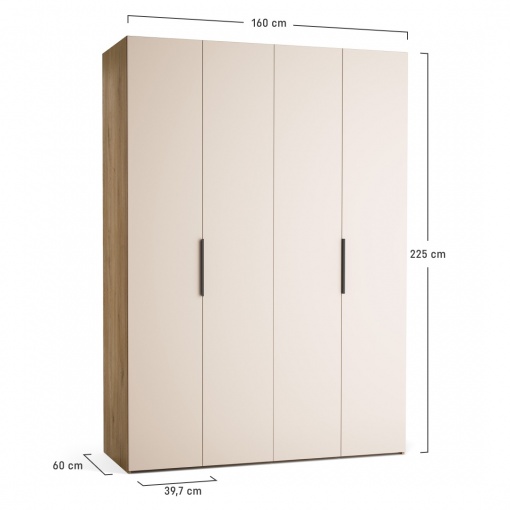 • Ширина мебели 160 см. В коллекцию также входят более узкие модели шкафов шириной 125 см и 140 см, а также более широкие модели шириной 175 см и 200 см. Их можно комбинировать друг с другом, создавая просторные помещения для хранения.