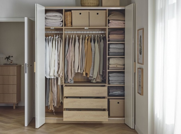 • Внутреннее наполнение шкафа может меняться в зависимости от ваших потребностей. Просто приобретите дополнительные полки или металлическую вешалку для аксессуаров, чтобы упростить организацию одежды и аксессуаров.