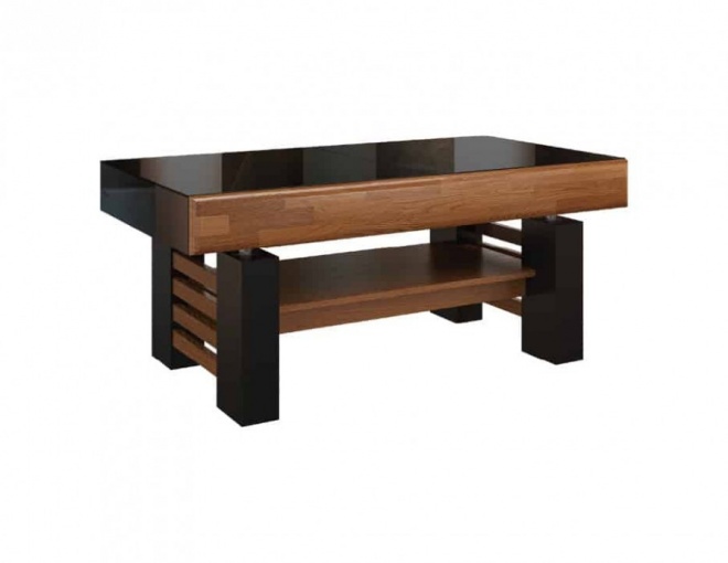 Мебель для гостинной, столовой и спальни радуют легкостью формы и сдержанной элегантностью, создавая гармоничный интерьер. Фронты блоков выполнены из массива дуба. Мебель доступна цветах: античный орех в сочетании с черным. Современные решения, такие как системы открытия нажатием push to open, позволяют тихо открывать ящики и дверцы, что является отличным решением для спальни, а подсветка стеклянных полок, подчеркивают функциональные качества этойт коллекции.